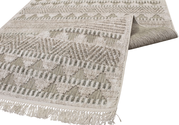 Γήινη βάση με απαλά χρώματα στο πέλος του χαλιού και υπέροχο μπέζ κρόσσι.